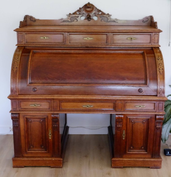 Realizzata in legno di alta qualità, questa scrivania presenta intagli dettagliati e un design con piano a rullo che aggiunge un tocco classico a qualsiasi spazio.