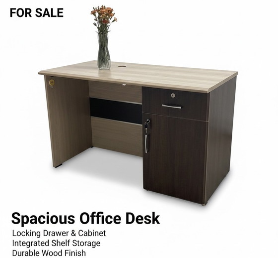 Questa scrivania da ufficio è progettata per combinare funzionalità con un'estetica moderna. Le sue intense tonalità di marrone e beige creano un look sofisticato che si adatta sia agli interni domestici che a quelli degli uffici professionali.