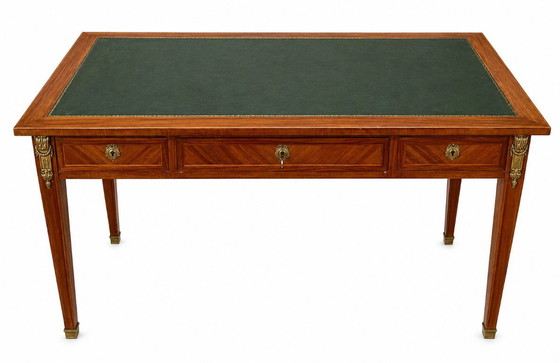 Scrivania in stile Luigi XVI con impiallacciatura e ottone, 3 cassetti