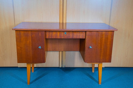 Questa scrivania vintage emana un fascino senza tempo che si adatta perfettamente a qualsiasi interno classico o retrò. Il caldo legno marrone e le linee pulite la rendono un mobile versatile, funzionale ed elegante allo stesso tempo.