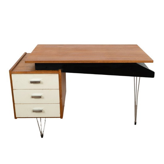 Scrivania vintage con forcina di Tijsseling per Tijsseling Nijkerk. Questo pezzo è dotato di gambe in acciaio con perni. La scrivania è dotata di un ulteriore vano contenitore composto da tre cassetti.