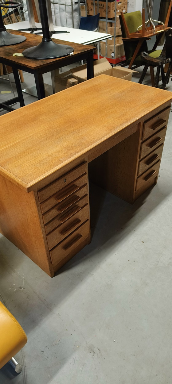 Questa splendida scrivania vintage in rovere degli anni '50 emana un'eleganza senza tempo che si adatta perfettamente sia agli interni classici che a quelli moderni. Il caldo legno marrone e la finitura raffinata rendono questo pezzo un vero e proprio elemento di spicco nel vostro ufficio o studio.