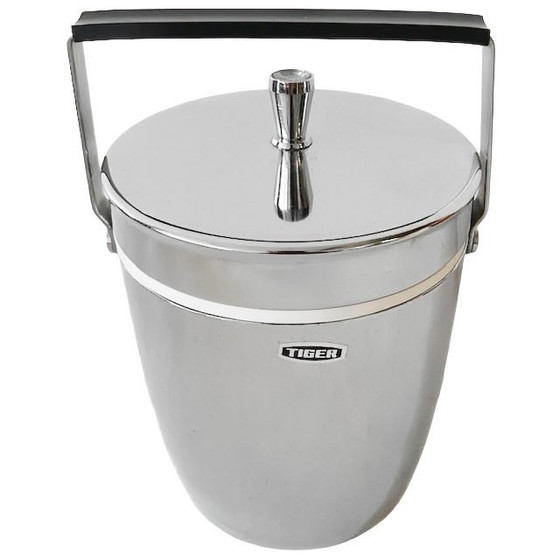 Secchiello per il ghiaccio isolato cromato vintage Tiger, argento cromato, anni '60