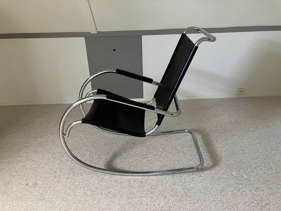 Sedia a dondolo in pelle cromata di Fasem, Italia. In buone condizioni vintage. Nessun graffio sulle parti visibili, i braccioli sono come nuovi. 1960s.