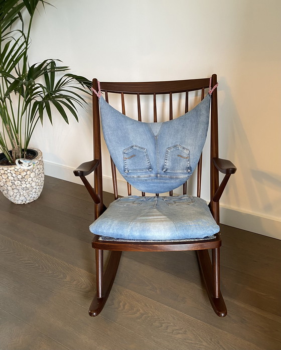 I cuscini non sono originali, ma rivestiti con vecchi jeans. Questo conferisce alla sedia un tocco grintoso e contemporaneo.