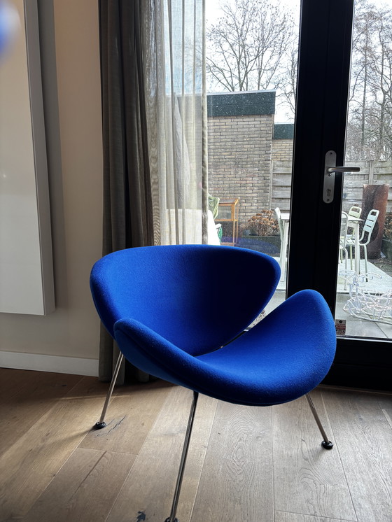 Scopri il fascino iconico della sedia Artifort Orange Slice in un vivace blu reale. Progettata dal celebre Pierre Paulin nel 1960, questa sedia è un capolavoro del design moderno di metà secolo. Le sue linee fluide e la silhouette unica la rendono un'aggiunta perfetta a qualsiasi interno moderno. Rivestita in tessuto di alta qualità, questa sedia offre comfort e resistenza. L'elegante struttura in metallo le conferisce un aspetto elegante e stabile, rendendola ideale sia per il soggiorno che per un elegante ufficio. Aggiungi un tocco di stile alla tua casa con questa splendida sedia Artifort.
