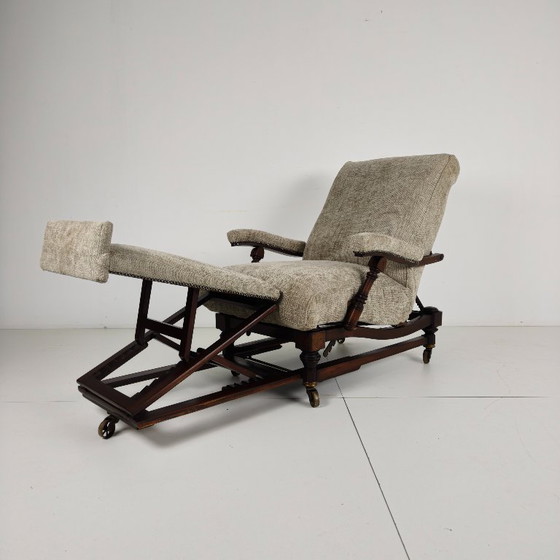 Splendida poltrona reclinabile vittoriana da biblioteca, risalente al 1860 circa.