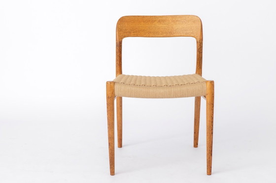 Sedia da pranzo in quercia modello 75 di Niels Otto Møller, metà del secolo scorso, danese, anni '50. Seduta in corda di carta v