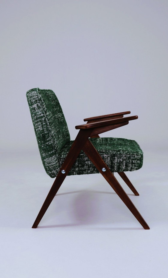 Vi presentiamo una poltrona vintage, uno dei modelli iconici degli anni '60 in Polonia, del designer polacco J. Chierowski. La poltrona è stata restaurata nel nostro laboratorio, con attenzione ai dettagli. Il legno di faggio è stato pulito e tinto di nuovo in colore noce scuro. La seduta è dotata di un'imbottitura espressiva, una treccia verde con un tocco di filo bianco. Dimensioni della poltrona: altezza 73 cm, larghezza 58 cm, profondità 66 cm. Perfetta per la lettura, per il soggiorno, l'ufficio, la sala d'attesa e persino per i bambini! Questa poltrona ha la forma: - Design senza tempo - Stile vintage unico - Lavorazione solida - Ristrutturazione accurata - Rivestimento in velluto di alta qualità - Forma leggera - Stile moderno di metà secolo - estetica