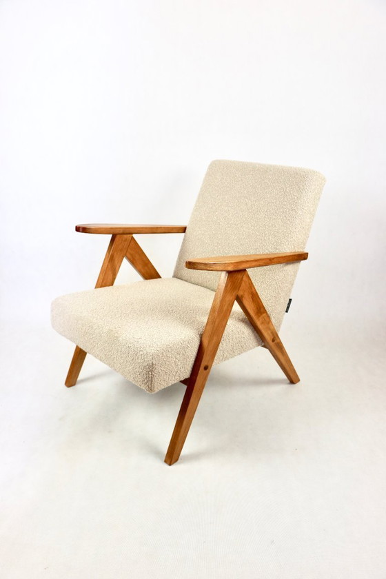 Poltrona vintage B-310 VAR in bouclé strutturale beige degli anni '70. 2 pezzi disponibili. Legno chiaro.