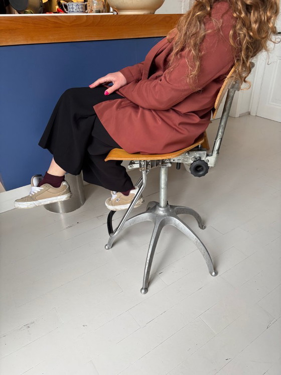 Aggiungete un tocco di eleganza vintage al vostro spazio creativo con questa sedia da disegno regolabile degli anni '60. Splendido esempio di design moderno di metà secolo, questa sedia coniuga estetica e funzionalità. La seduta e lo schienale in legno offrono non solo comfort, ma anche un fascino senza tempo, mentre la base in metallo garantisce stabilità e durata.