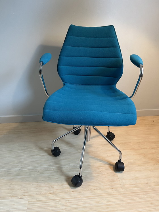 La sedia da ufficio Kartell Maui è una scelta elegante e confortevole per qualsiasi ufficio. Con il suo design moderno e l'imbottitura blu, questa sedia aggiunge un tocco di eleganza al vostro spazio di lavoro. La sedia è dotata di una struttura in metallo e di rotelle in plastica che ne garantiscono la durata e la mobilità. I braccioli sono imbottiti per un maggiore comfort. Perfetta per un uso prolungato, si adatta bene a un ambiente d'ufficio moderno.