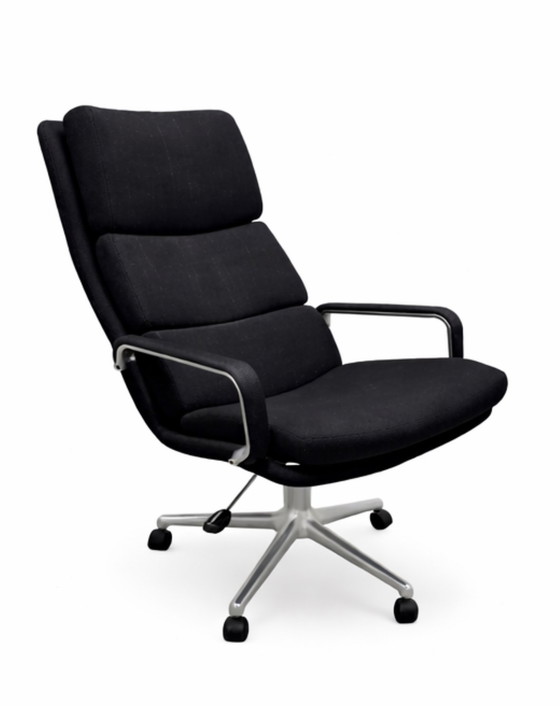 Sedia da ufficio Artifort in tessuto nero e metallo. Lievissimi segni di usura, ma generalmente in ottime condizioni. È inclinabile e può essere alzata e abbassata. Segnata sul fondo della seduta.