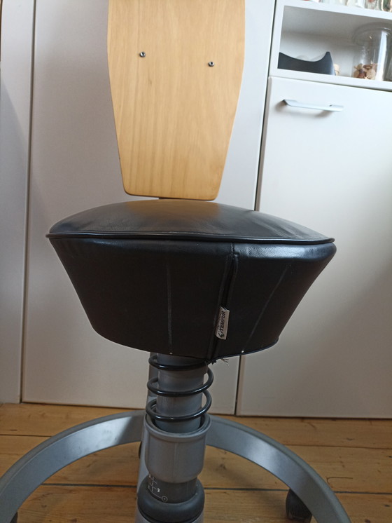 Prova il massimo comfort con questa sedia da ufficio Swopper, progettata per una seduta dinamica. La sedia è dotata di un meccanismo a molla e di uno schienale ergonomico, che ti permettono di muoverti senza sforzo mentre lavori. Il design moderno, che combina pelle nera e legno, aggiunge un tocco di stile a qualsiasi spazio ufficio. La robusta base in metallo offre stabilità e durata, ideale per un utilizzo prolungato. Contattaci per maggiori informazioni o per aggiungere questa sedia unica al tuo spazio di lavoro.