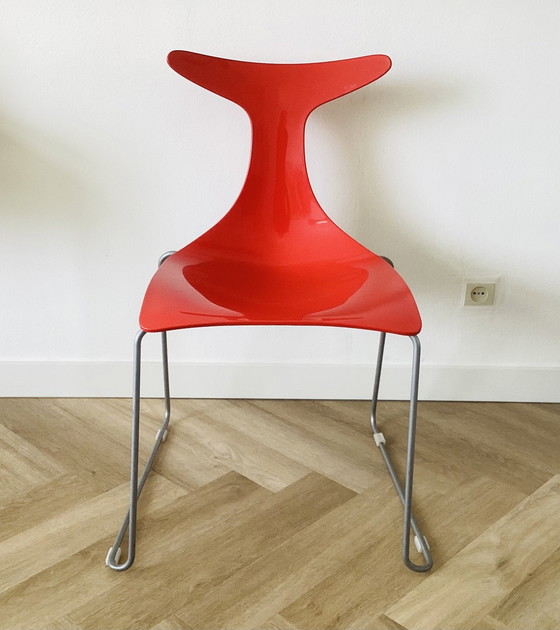 Elegante, minimalista e con quella tipica finezza italiana: questa sedia Delfy, disegnata da Gino Carollo per Ciacci Kreaty, è il punto focale di ogni ambiente. La sedia Delfy non è una normale sedia da pranzo. Le linee fluide, lo schienale alto e l'elegante struttura in metallo le conferiscono un aspetto moderno e raffinato. Oltre all'aspetto, questa sedia è anche semplicemente comoda. Lo schienale leggermente curvo offre un buon supporto e la robusta struttura in metallo garantisce stabilità senza apparire ingombrante.