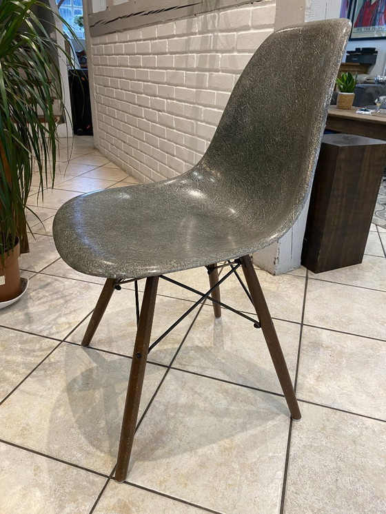 Sedia DSW, fibra grigio elefante, noce tassello, Eames Herman Miller vintage 1950
