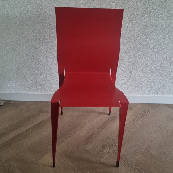 Sedia Fulfil, 1989, progettata dall'architetto Mart van Schijndel. Lamiera d'acciaio piegata, verniciata di rosso. Dimensioni: L 44 x A 89 x P 51,5 cm. Ottime condizioni.