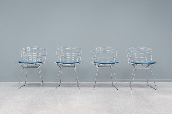 Delizioso set di 4 sedie Bertoia con cuscini blu