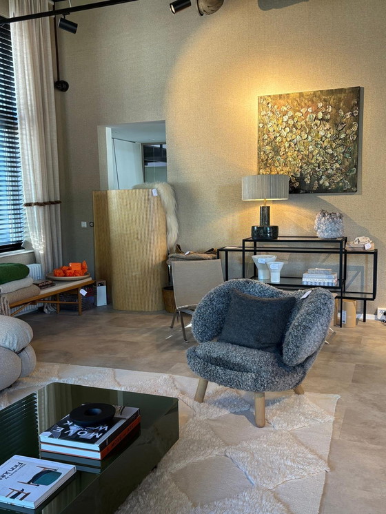 Un vero colpo d'occhio. La splendida sedia Pelican di Finn Juhl è disponibile con gambe in rovere e rivestimento in pelle di pecora Gotland. È uno splendido vello grigio con riccioli fini. Ne vengono prodotti solo pochi esemplari all'anno. Adorerai questa poltrona; è incredibilmente comoda, che tu sia alto o basso. Il rivestimento in pelle di pecora Gotland la rende meravigliosamente morbida e le tue mani vorranno naturalmente accarezzarla. Il design della sedia è audace, robusto ed elegante al tempo stesso. Un pezzo da non perdere.