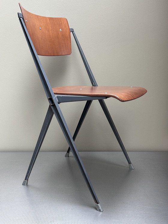 Questa sedia Pyramid, disegnata da Wim Rietveld per Ahrend de Cirkel, è in ottime condizioni. La base reca la data 12 dicembre 1967, con un timbro di difficile lettura.