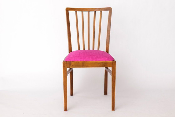 Sedia tedesca d'epoca - Anni '50 - Legno di faggio - Tappezzeria color magenta - Modernariato di metà secolo
