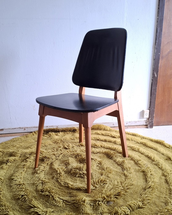 Questa sedia vintage di metà secolo è un vero e proprio elemento di spicco per i vostri interni. Con le sue linee pulite e il suo aspetto classico, dona un tocco di fascino retrò a qualsiasi ambiente. Perfetta per la sala da pranzo o come sedia d'accento in soggiorno, questa sedia coniuga stile e comfort con grande naturalezza.