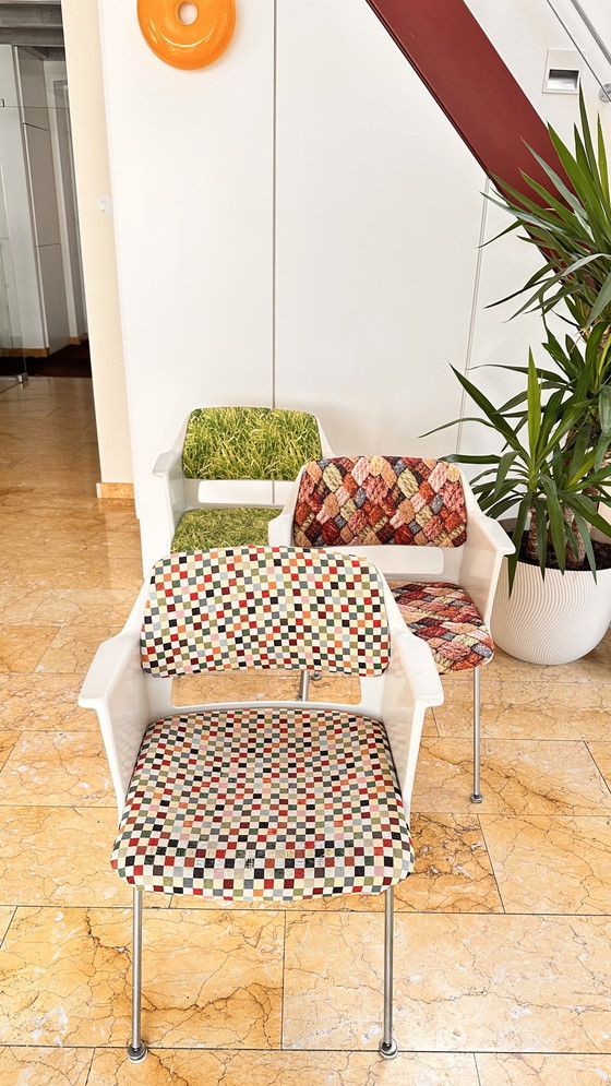 Ho in vendita 3 bellissime sedie multifunzionali con un'eccellente qualità di seduta; consultate i miei altri annunci. Le sedie sono adatte sia per la sala da pranzo che per la scrivania. La scocca in poliestere è particolarmente facile da pulire. La scocca presenta lievi segni d'uso ma è in buone condizioni!