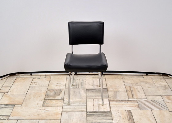 Sedia vintage in pelle con gambe cromate, anni '70, Cecoslovacchia