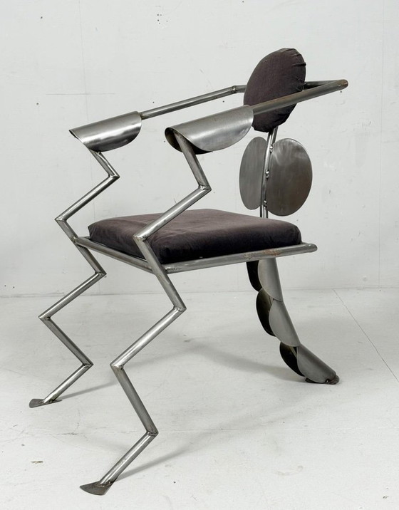 Sedia/poltrona in stile Memphis Milano, Germania, anni '80, edizione limitata, solida struttura in metallo, numero di edizione limitata 10/90 sul lato inferiore.