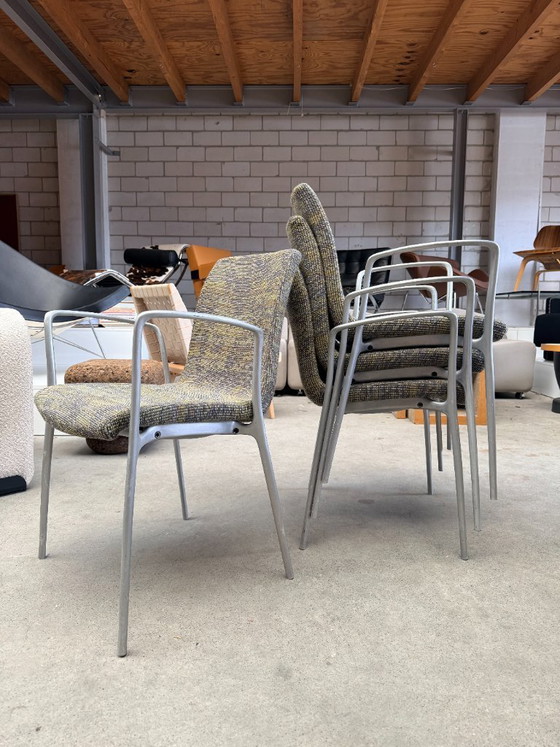 CondizioneBuonoColoriGrigio, GialloMaterialeTessile, MetalloNumero di articoli4Altezza91 cmLarghezza58 cmProfondità57 cmAltezza del sedile46 cmSegni di utilizzoGraffi