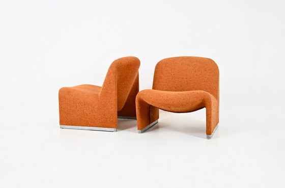 Coppia di sedie Alky in tessuto originale arancione. Altezza seduta: 38 cm. Etichette Castelli. Usura dovuta al tempo e all'età.