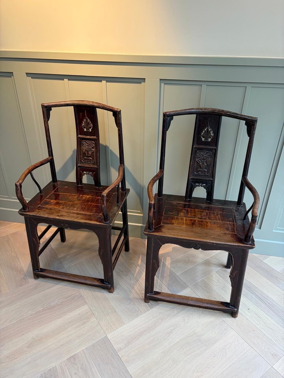 Fate un salto indietro nel tempo con queste squisite sedie antiche cinesi della dinastia Qing. Realizzate con meticolosa attenzione ai dettagli, queste sedie incarnano l'eleganza e la raffinatezza di un'epoca passata.