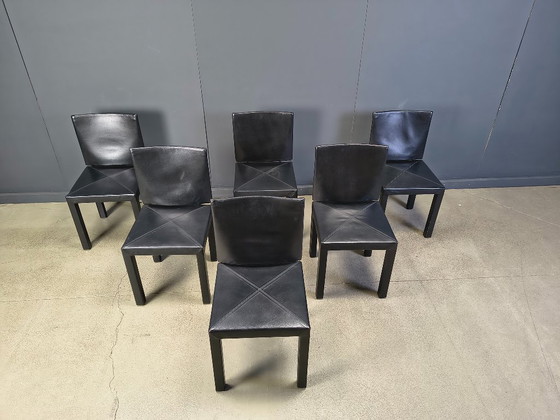 CondizioneEccellenteColoriNeroMaterialePelleNumero di articoli6StileVintageMarchioB&B ItaliaAltezza88 cmLarghezza46 cmProfondità57 cmAltezza del sedile47 cm