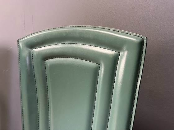 Set di 4 sedie da pranzo italiane con rivestimento in pelle verde cannettata.