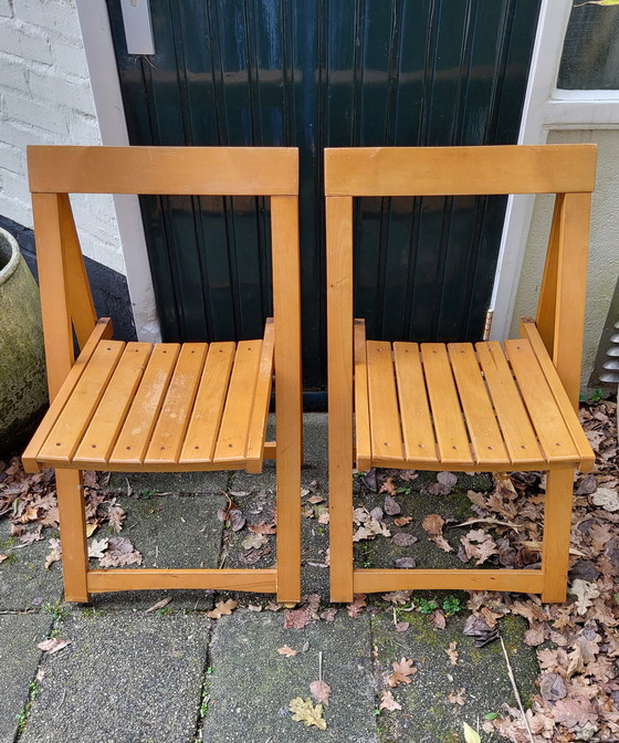 Sedie pieghevoli in legno di metà secolo, disegnate da Aldo Jacober, anni '60.