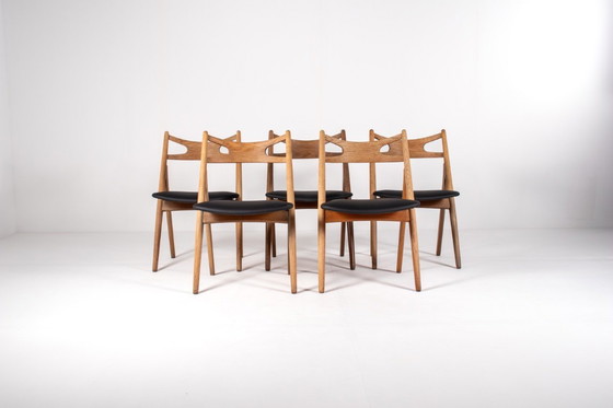 Sedie Sawbuck di Hans J. Wegner – Set di 5, modello CH29, quercia, anni '50