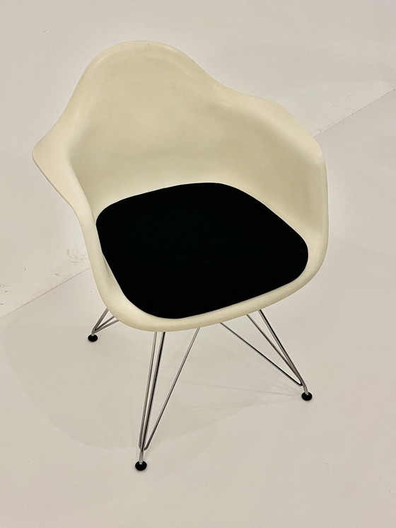 Vi presentiamo un set di quattro sedie originali Vitra che incarnano design moderno e funzionalità. Queste sedie presentano un'elegante scocca in plastica bianca abbinata a un cuscino di seduta nero a contrasto, creando un impatto visivo sorprendente, contemporaneo e senza tempo. Prodotte dal rinomato marchio Vitra, noto per il suo impegno verso la qualità e l'eccellenza del design, l'elegante combinazione di bianco e nero garantisce che queste sedie si adattino a una varietà di stili d'arredamento. Progettate con particolare attenzione al comfort e alla durata, sono ideali sia per ambienti domestici che per uffici. Contattateci oggi stesso per aggiungere un tocco di moderna eleganza al vostro spazio. Le sedie presentano alcune scoloriture e sono disponibili per il ritiro in loco. Il prezzo si intende per sedia.