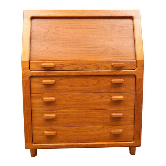 Secretaire di Dyrlund. Il mobile è interamente realizzato in legno e dotato di diversi scomparti. Il cassetto superiore può essere estratto e trasformato in uno spazio per scrivere.