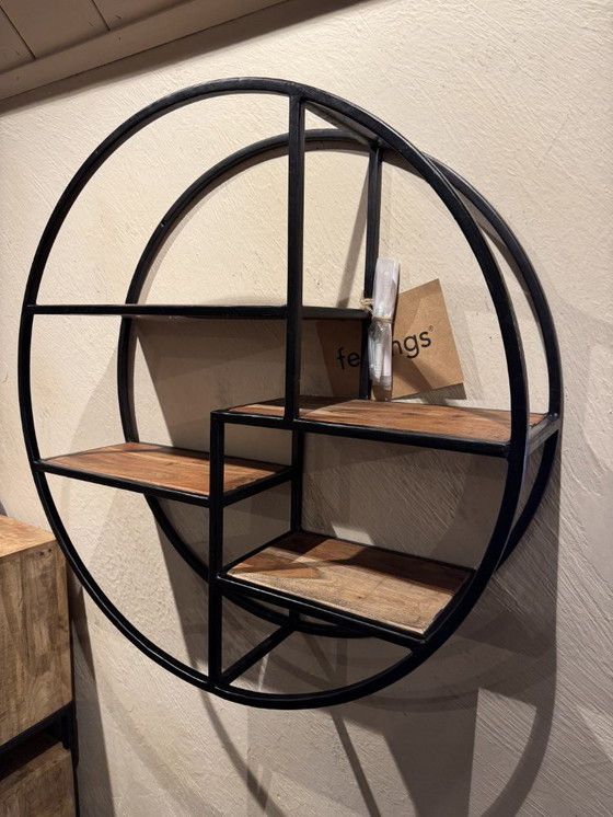 Portaoggetti da parete Feelings Muro Realizzato in: Legno di acacia Struttura in metallo nero Dimensioni: Diametro: 80 cm Profondità: 22 cm Tutte le misure sono approssimative