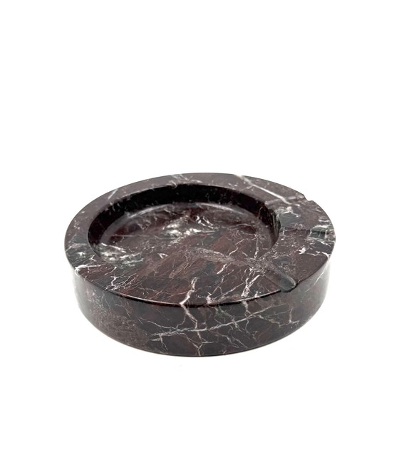 Posacenere in marmo rosso di Levanto, disegnato da Sergio Asti per UP&UP Carrara, Italia, anni '70. Marmo Rosso di Levanto, forma circolare con incavo decentrato in marmo venato, diametro 15 cm x altezza 3 cm. Condizioni: molto buone, coerenti con l'età e l'uso.
