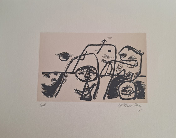 Serigrafia di Corneille, firmata a mano da un disegno del periodo Cobra, "Bambini che giocano".