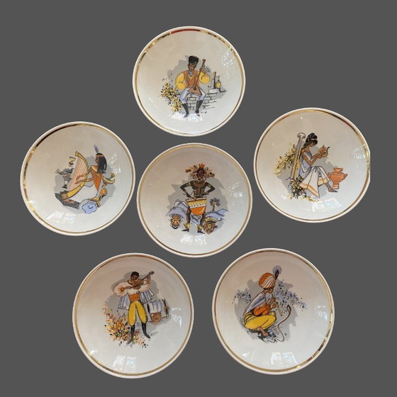 Servizio da 6 pezzi in porcellana Schirdding Bavaria di metà secolo, dedicato ai musicisti di tutto il mondo.