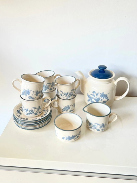 staffordshire potteries, servizio da caffè vintage, servizio da tavola inglese, servizio da tè retrò, servizio anni '70, terracotta inglese, servizio uva, caffè vintage, ceramica inglese, servizio da tavola retrò anni '70, servizio da tavola cottagecore, ceramica inglese, set da tè vintage, servizio da caffè uva, decoro uva blu, set da colazione vintage, tavola retrò, brunch vintage, stoviglie decorative, collezione