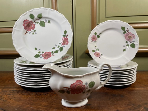 Splendido servizio da tavola in porcellana francese, motivo Aliette, caratterizzato da un elegante e intramontabile motivo floreale, selezionato da KILT.