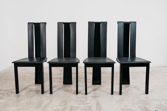 Elegante set di quattro sedie postmoderne originali degli anni ’80, caratterizzate da linee essenziali e un’estetica scultorea tipica del periodo. Il design minimale ma deciso le rende perfette per ambienti contemporanei, industriali o modernariato.