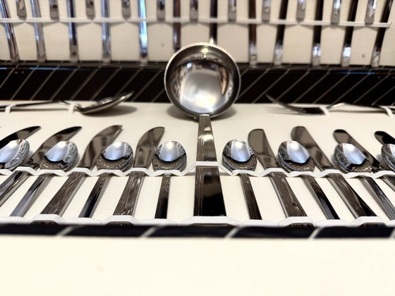 Set 75 posate vintage Abert. Acciao Inox 18/10, nuove, mai utilizzate. Con garanzia e scatola originale. Disegno in stile Art Deco.