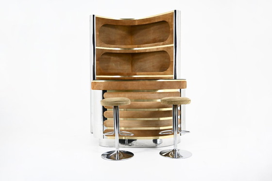Set da bar con 2 sgabelli attribuito a Willy Rizzo, anni '70