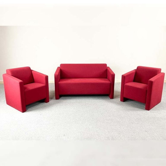 Set di 3 sedute rosse di Dietiker, composto da un sedile a due posti e da 2 sedute singole. Componibile a piacere, ideale per aree di ricevimento o per il soggiorno.