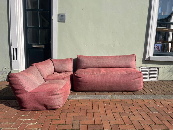 Divano a due posti Roolf Living Dotty di colore rosa, completo di elemento angolare e modulo a 1 posto.