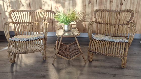 CondizioneBuonoColoriBeige, MarroneMaterialeBambùNumero di articoli3MarchioRohé NoordwoldeAltezza70 cmLarghezza60 cmProfondità55 cmAltezza del sedile33 cmSegni di utilizzoCrepa